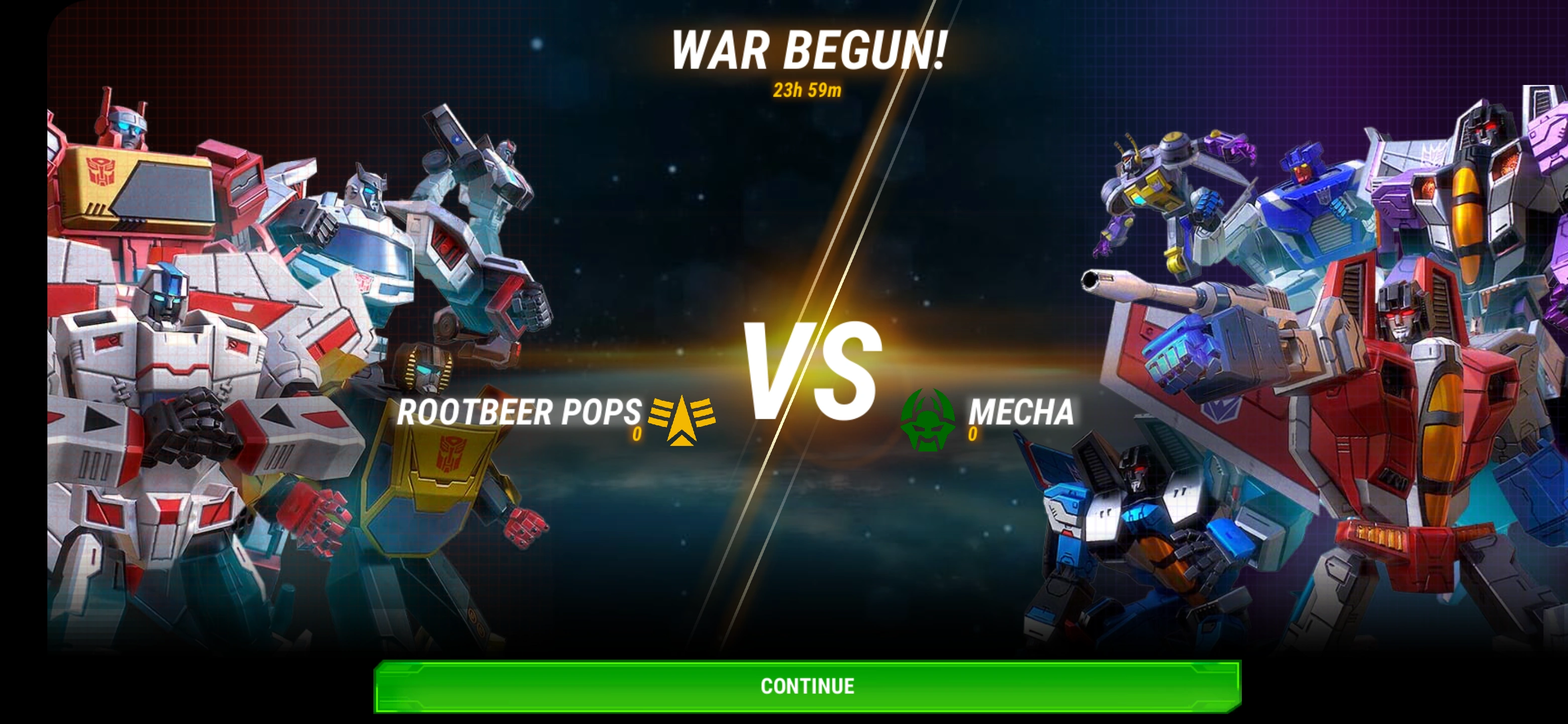 Event Battle are created especially for the event battle only. Events collect Battle Points instead of Alloy or Energon, and the points unlock various rewards. Events last 72 hours and begin Friday at 10:00 UTC.